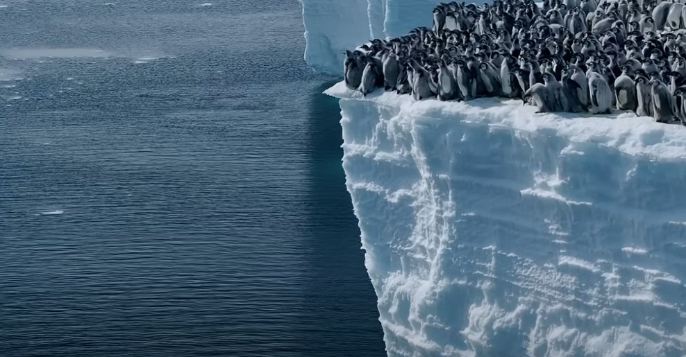 Emperor penguin chicks jumping